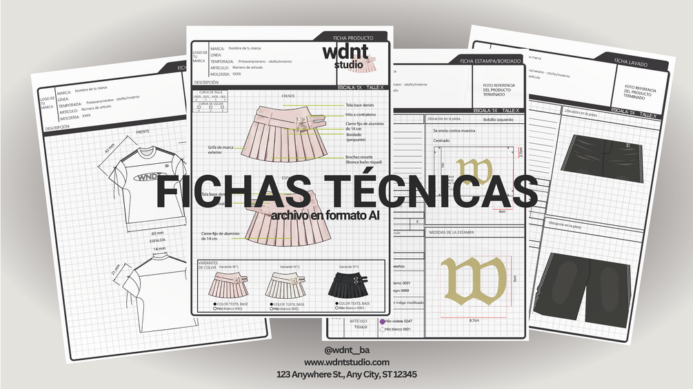 ✦ PÁGINAS INCLUIDAS -✦ Fichas de geometrales / Ficha de medidas y cotas / Ficha producto (con variantes de color y talle) / Ficha secuencia de armado / Ficha de bordado o estampado / Ficha de lavado (especial para prendas denim).